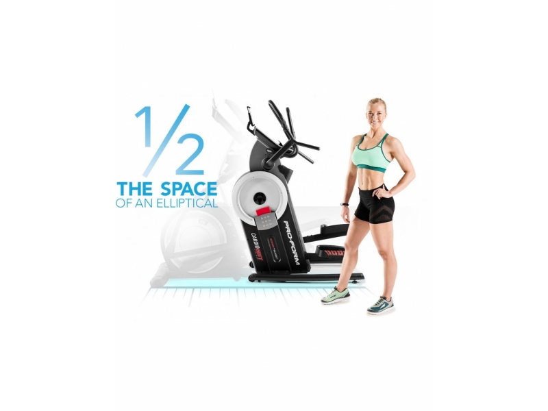 Cu bicicleta eliptică ProForm Cardio HIIT Trainer va antrenați mușchii și ardeți caloriile de 2 ori mai eficient față de un echipament clasic. ProForm Cardio HIIT Trainer este dotată cu o volantă de 13kg acționată electronic prin 24 nivele de rezistență.