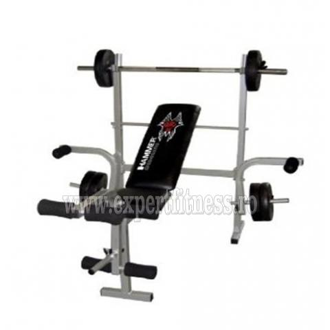 Banca haltere multifunctionala HAMMER-POWER XT +set haltere/gantere 25Kg este o banca de haltere universala cu spatar reglabil de pana la 4-x pentru exercitii p...
