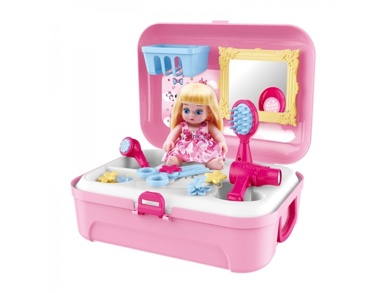 Setul de infrumusetare contine piese cu ajutorul carora fetele se vor putea juca intr-un mod foarte placut cu papusa.