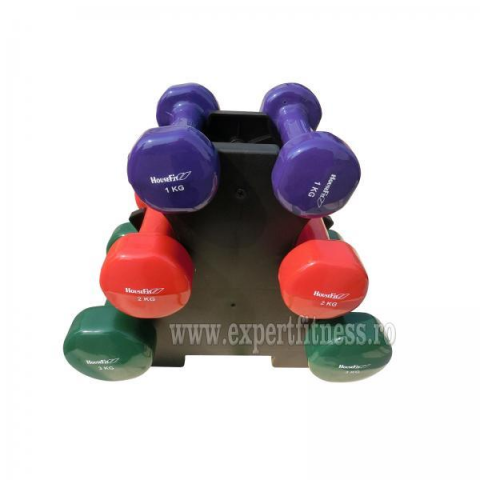 Set 6 gantere vinil cu suport 12kg HouseFit