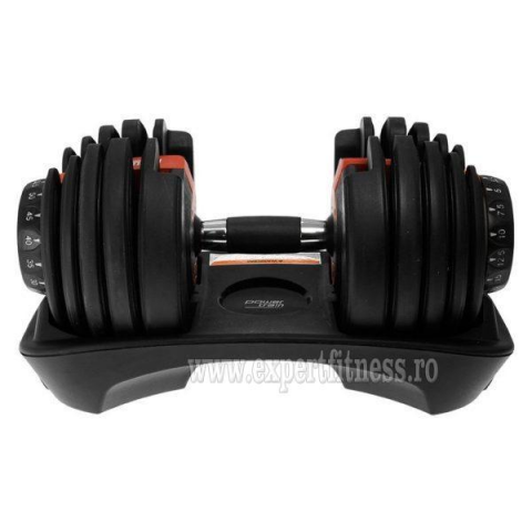 Gantera reglabila necesita doar rasucirea unui buton de reglare a greutatii.