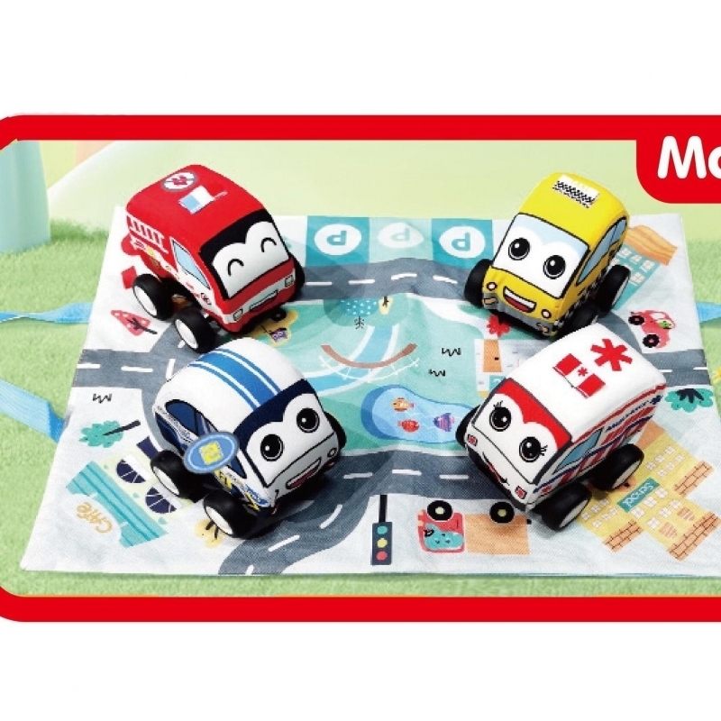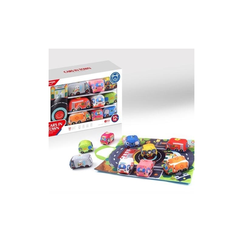 Setul contine si un covoras care imita strada, astfel incat cpilul le poate plimba, parca, sau le poate duce in parc.Acest set de masinute textile reprezinta alegerea perfecta pentru stimularea precoce a micutului dumneavoastra.